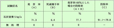 (C) 自然条件を対象とした春先の発芽率85.3〜97.4%を考慮した防除率